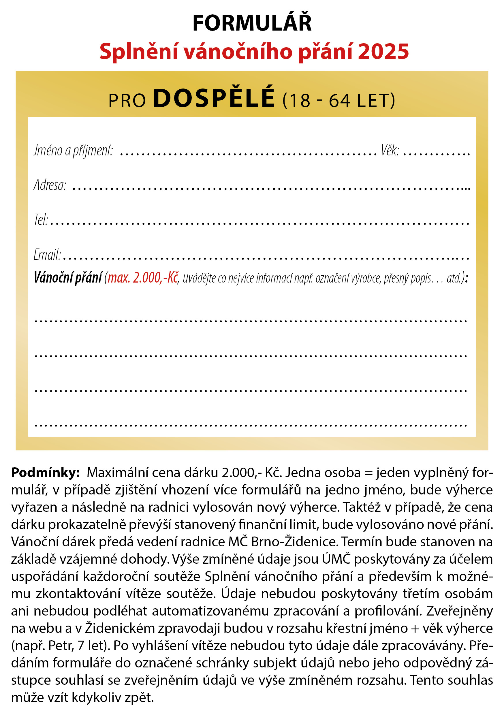 - Formulář splněné přání 2025 - pro dospělé (PDF, 34 kB)