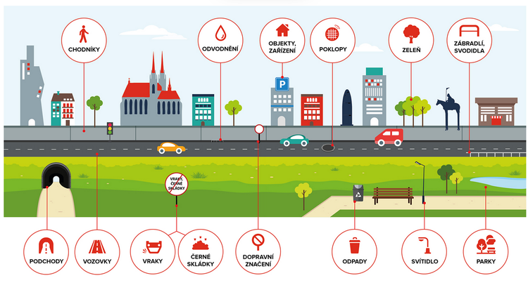 - Hlášení závad na zařízeních a komunikačních plochách, které jsou ve vlastnictví a správě subjektů nezapojených do projektu BPB, jako jsou například jednotlivé městské části, DPMB, a další.