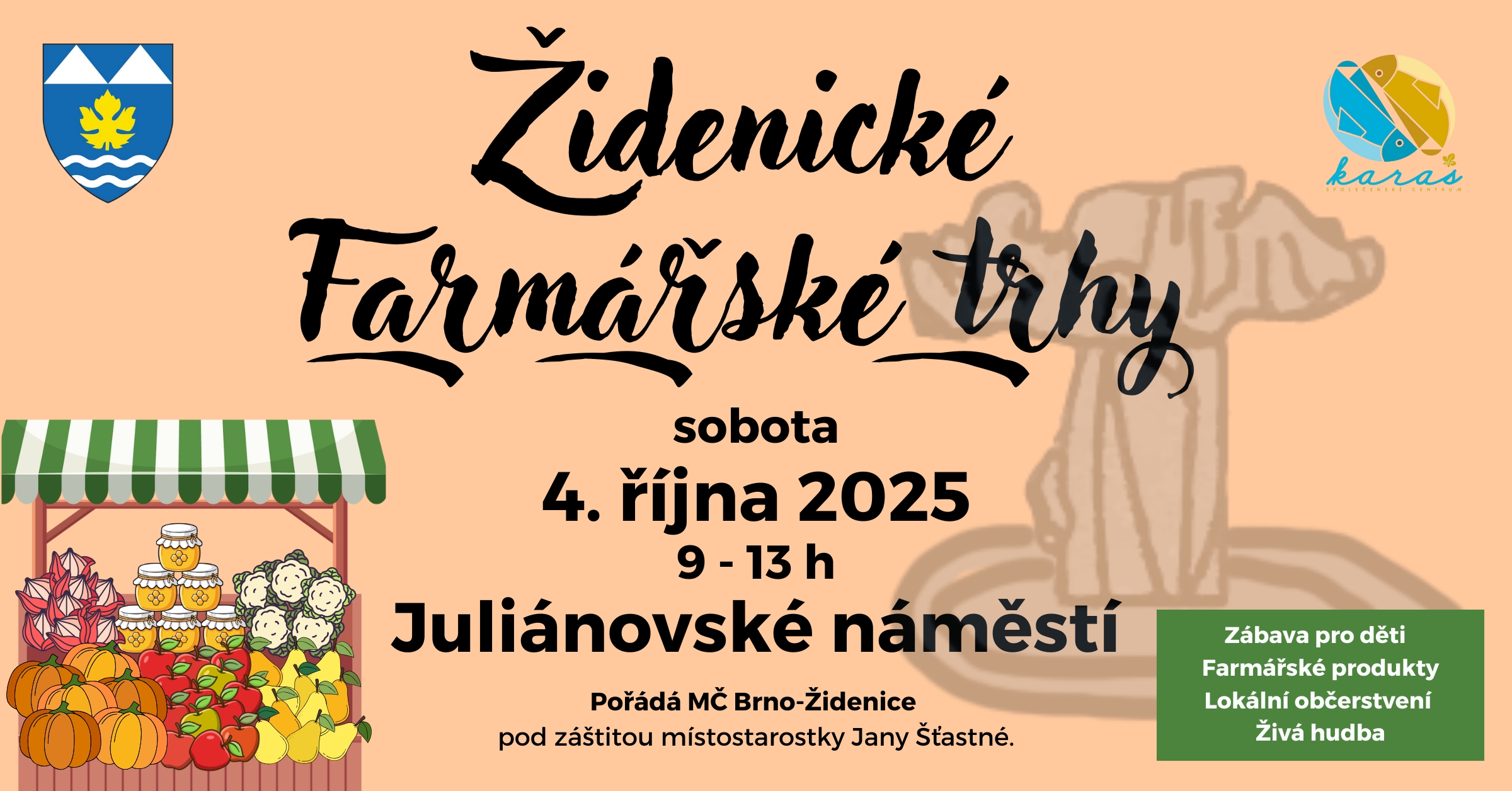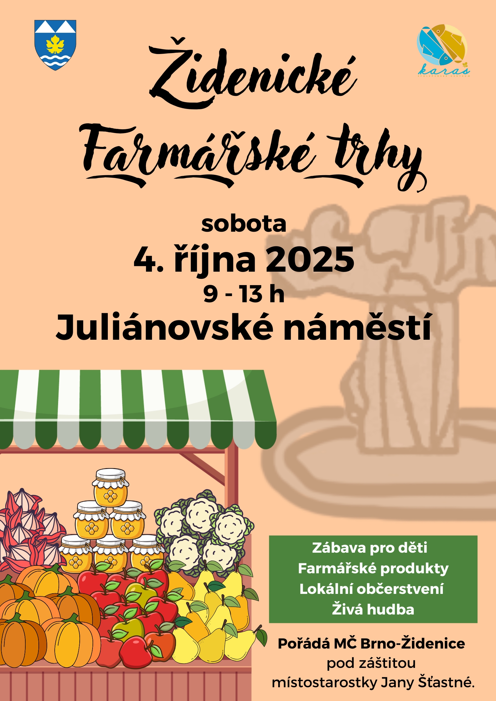 Srdečně zveme na říjnový Židenický Farmářský trh v sobotu 4. 10. 2025 v 9-13 hod. na Juliánovském náměstí.