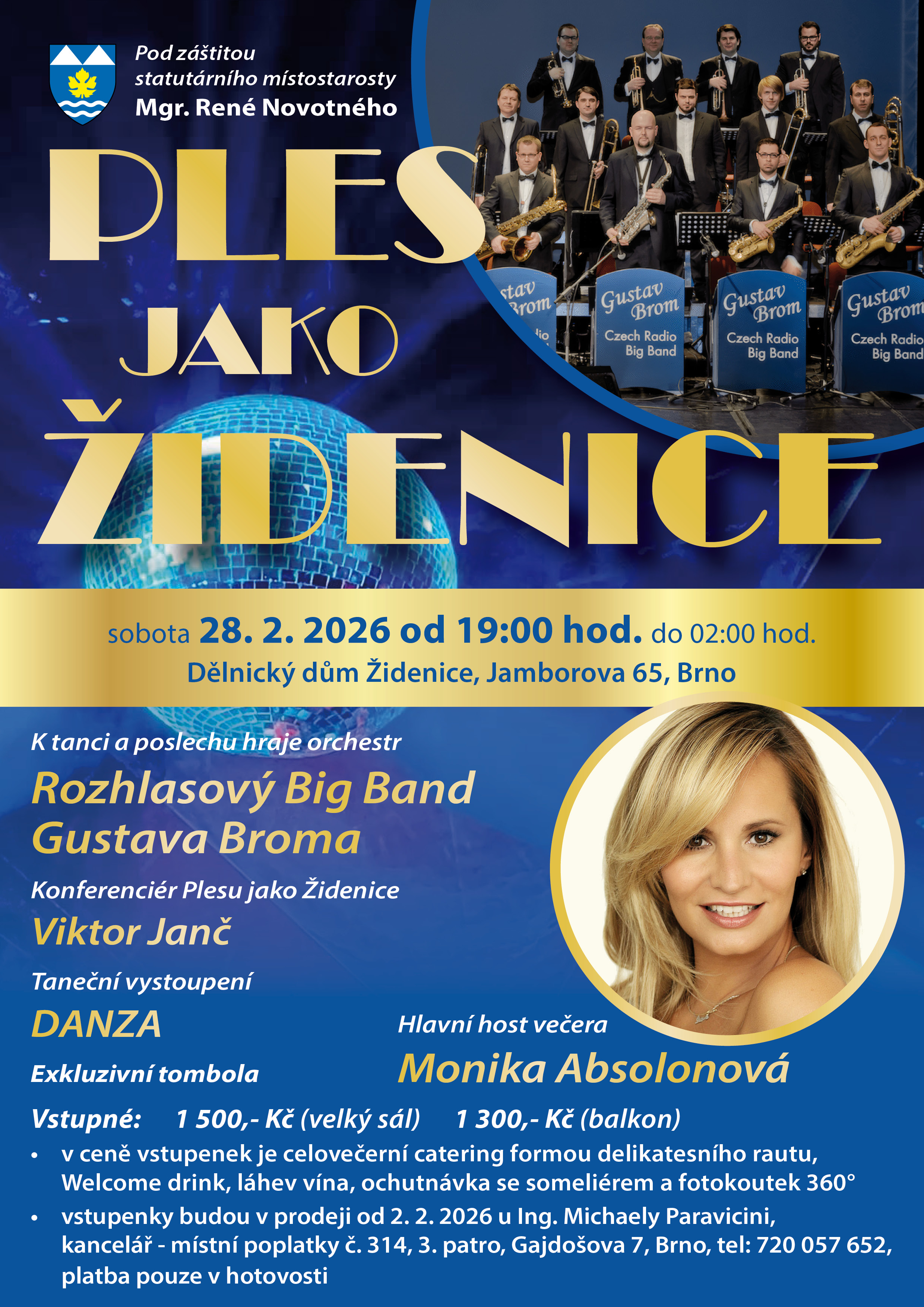 Vstupné: • 1 500,- Kč (velký sál) • 1 300,- Kč (balkon)