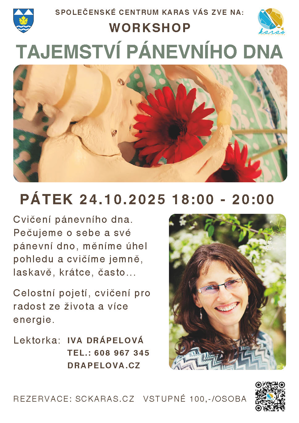 Zveme Vás na praktickou ochutnávku z celodenního kurzu Tajemství pánevního dna I. Na workshopu cvičíme pánevní dno. Pečujeme o sebe a své pánevní dno, měníme úhel pohledu a cvičíme jemně, laskavě, krátce, často... Jedná se o celostní pojetí, cvičení pro radost ze života a více energie.