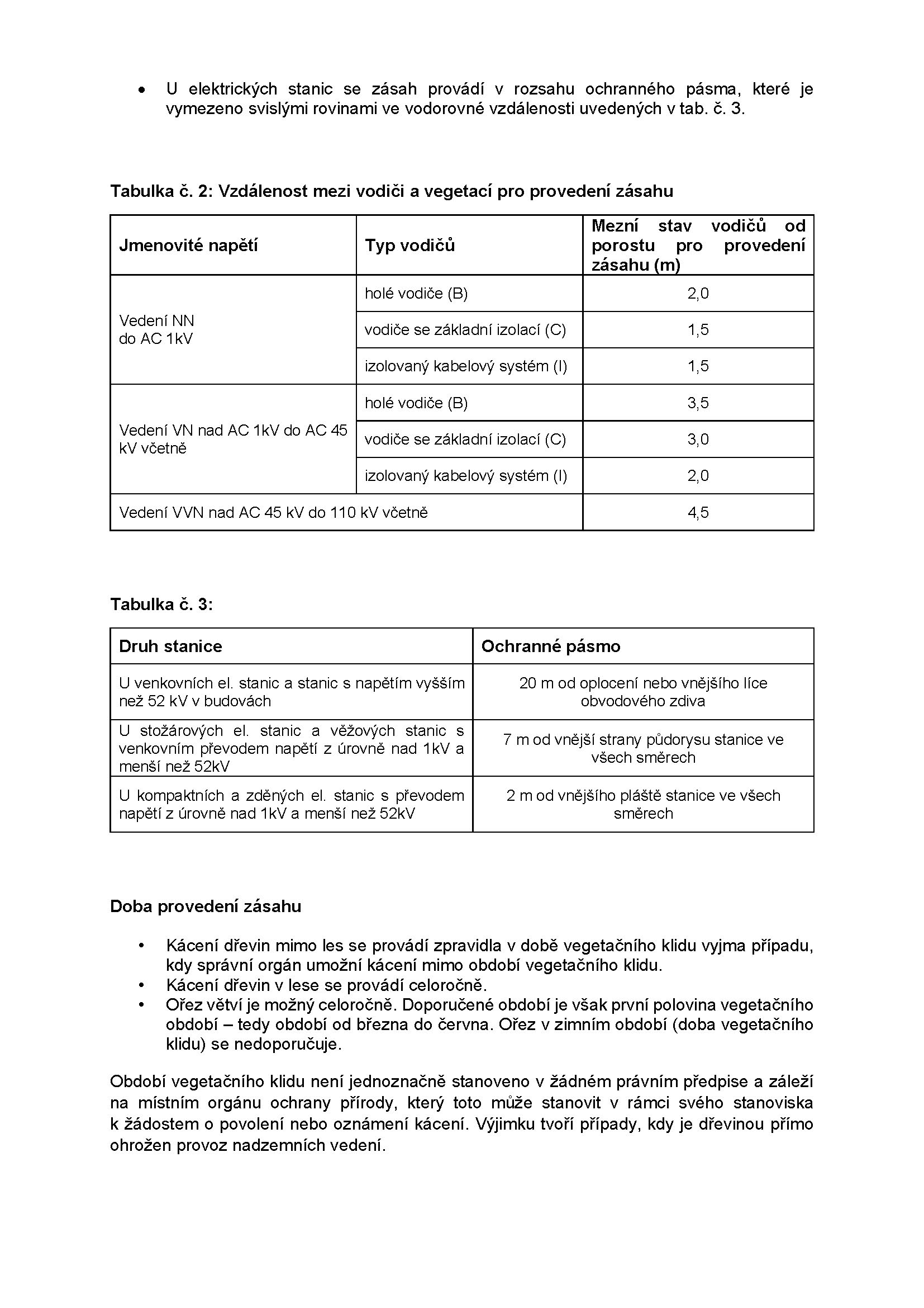 Na základě tohoto zákona a dle platných norem (PNE 33 0000-6, PNE 33 3300, PNE 33 3301, PNE 33 3302) vás žádáme o odstranění dřevin ohrožujících bezpečný a spolehlivý provoz elektrického distribučního zařízení.