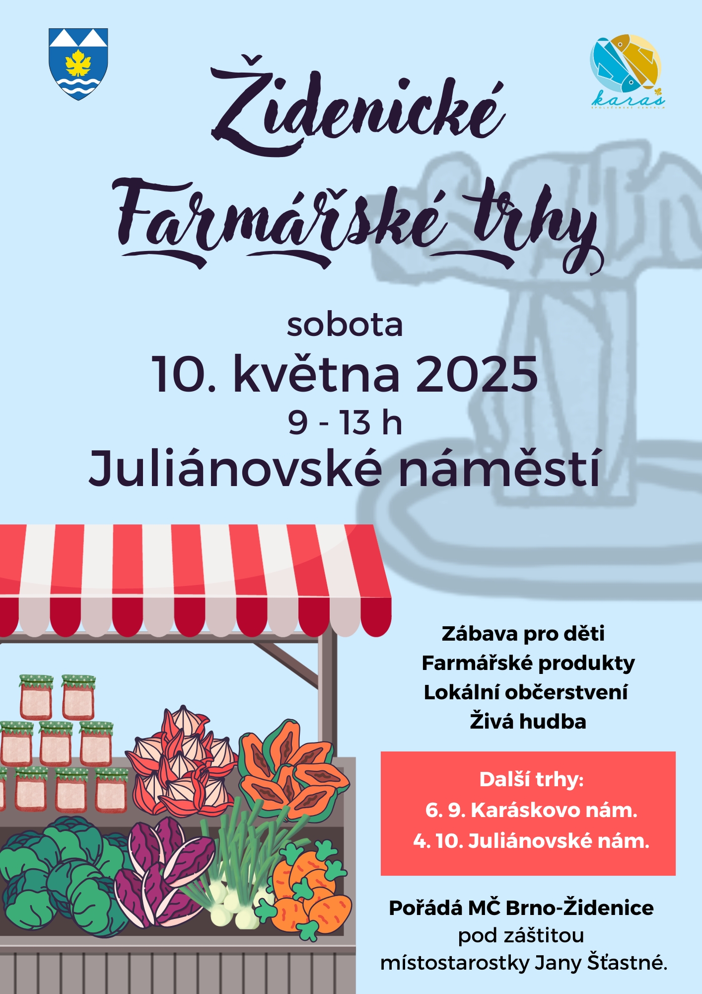 Srdečně zveme na květnový Židenický Farmářský trh v sobotu 10. 5. 2025 v 9-13 hod. na Juliánovském náměstí.